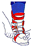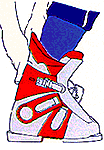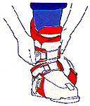 Dès que votre pied se trouve dans la chaussure, donner un petit coup de talon sur le sol de manière à positionner celui-ci correctement dans le chausson de la chaussure. |